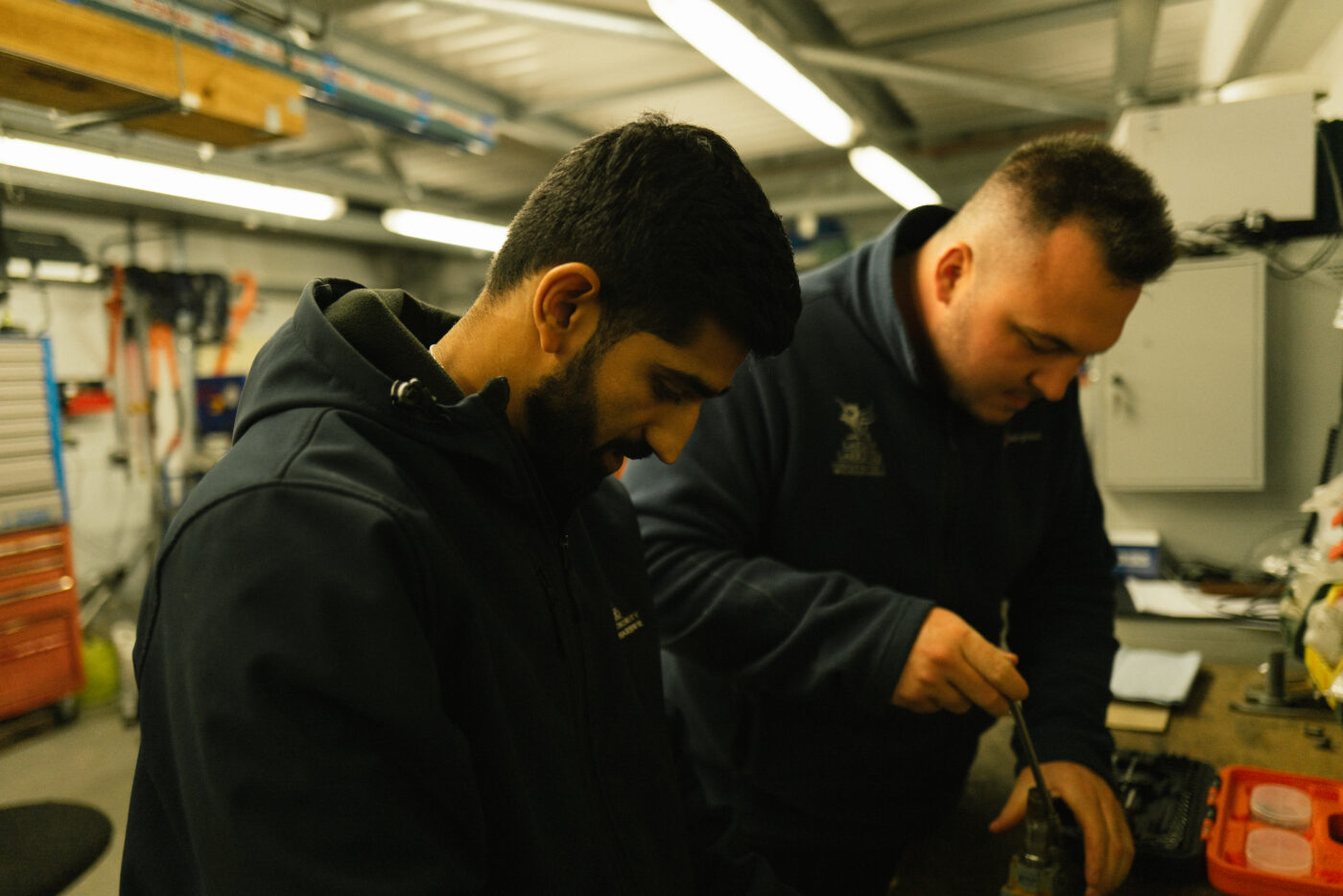 Dewch i gwrdd â’r pwerdy y tu ôl i’r Morglawdd – tîm agos o bum peiriannydd arbenigol, dan arweiniad. Prif Beiriannydd profiadol. Gyda dau arbenigwr trydanol a thri arbenigwr mecanyddol, mae pob un yn cynnig blynyddoedd o brofiad ymarferol mewn peirianneg trwm.