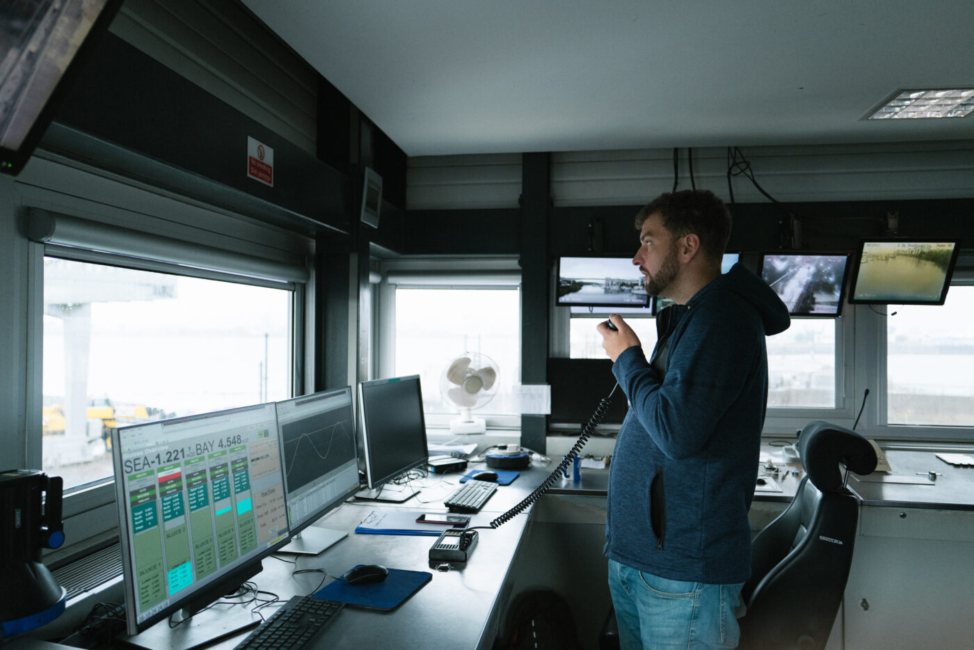 O’i safle yn Adeilad Rheoli’r Morglawdd, mae’r tîm yn monitro amodau llanw yn barhaus, gan addasu gatiau’r Morglawdd i atal llifogydd a chynnal lefelau dŵr. Mae hefyd yn rheoleiddio gatiau’r llifddorau i ryddhau dŵr gormodol, gan amddiffyn y seilwaith o amgylch.